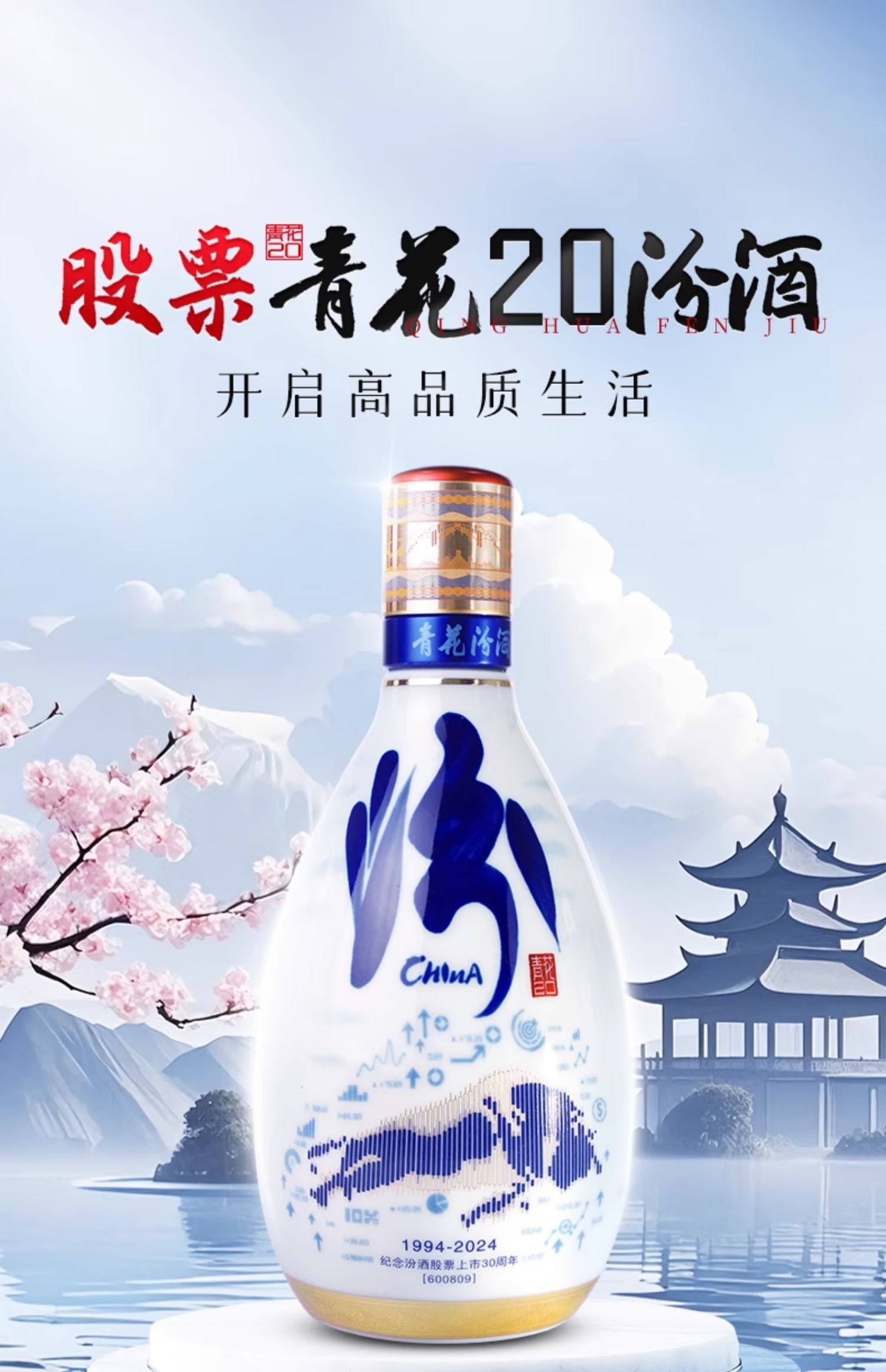 山西杏花村酒 53度青花20汾酒500ml汾酒上市纪念酒